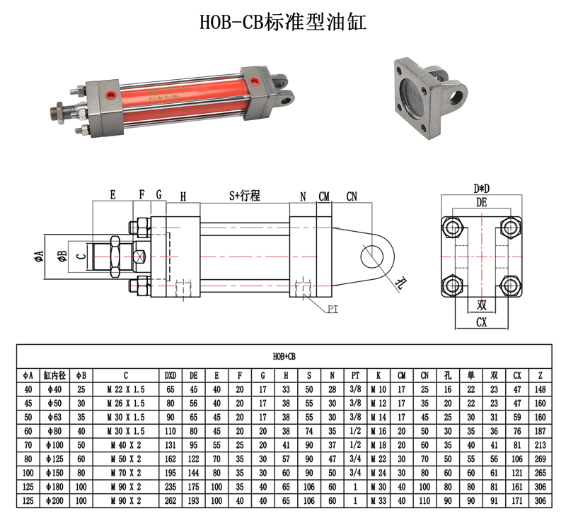 HOB重型拉杆油缸,属于双作用油缸,前后缸盖通过四根螺丝杆连接,拆装维修方面,常用于模具行业、包装机械行业等。标准HOB重型拉杆油缸,使用压力14Ma,由于压力属于中高压,油缸各个配件强度要求足够。